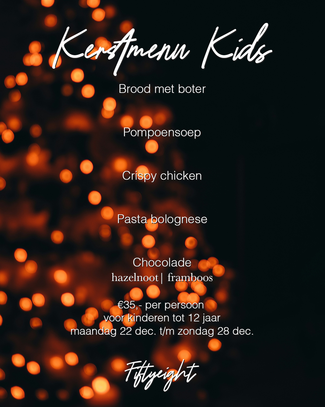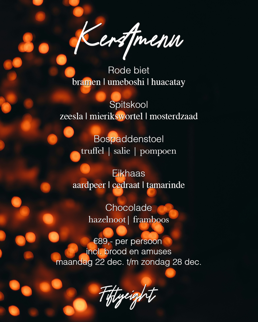 Bij Fiftyeight vieren we Kerst vanaf maandag 22 december tot en met zondag 28 december.